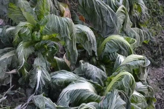 ②低沟密植,适当深栽。冬季多吹西北风,可在畦上开东西向或东北西南向、深10~13cm的浅沟,将菜栽种于沟内,有避风保暖效果。据测定,沟内的土面温度可比平地上高1~2℃。冬菜种植密度可大一些,菜株间距离小不仅利于群体呼吸热的积聚,还能减轻冷风的侵袭,提高株间气温与地温。冬菜栽植宜深点,将易受冻害的根茎部分埋入土中,可避免风吹,减轻冻害。