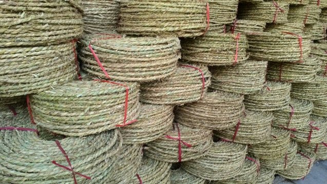 草绳是由稻草加工而成,价格低廉,对环境无污染,是一种属于绿色环保的农业加工产品。
